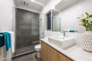 – Porcelain rectified tiles in wet areas